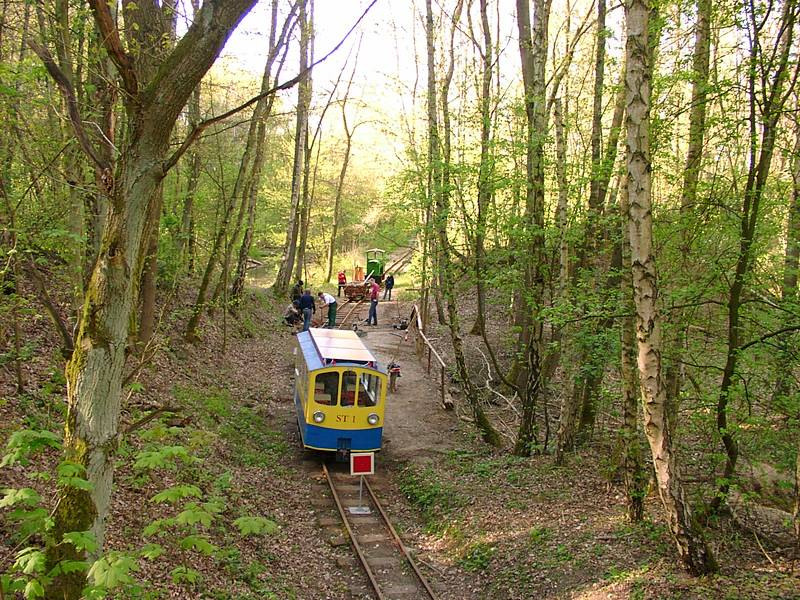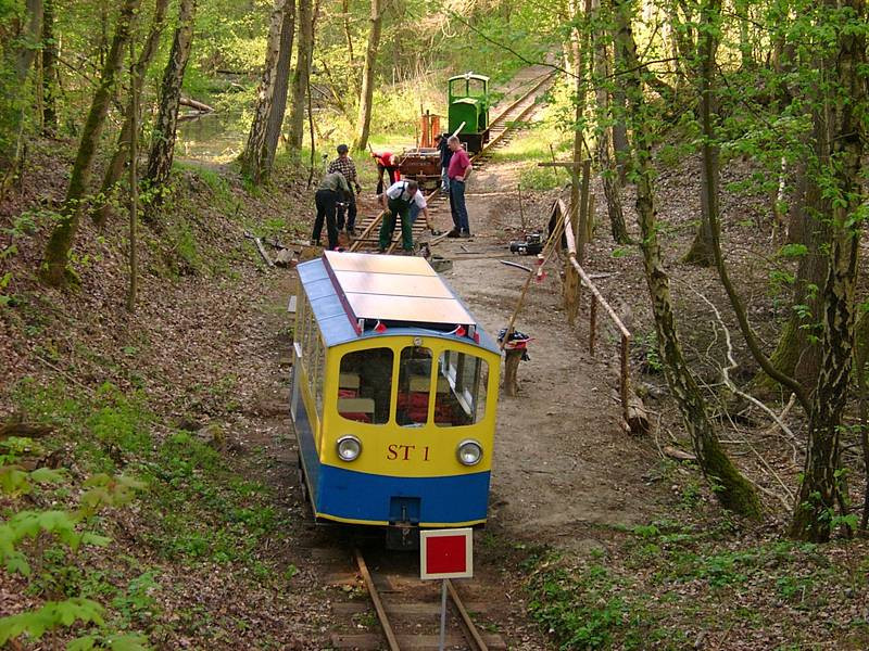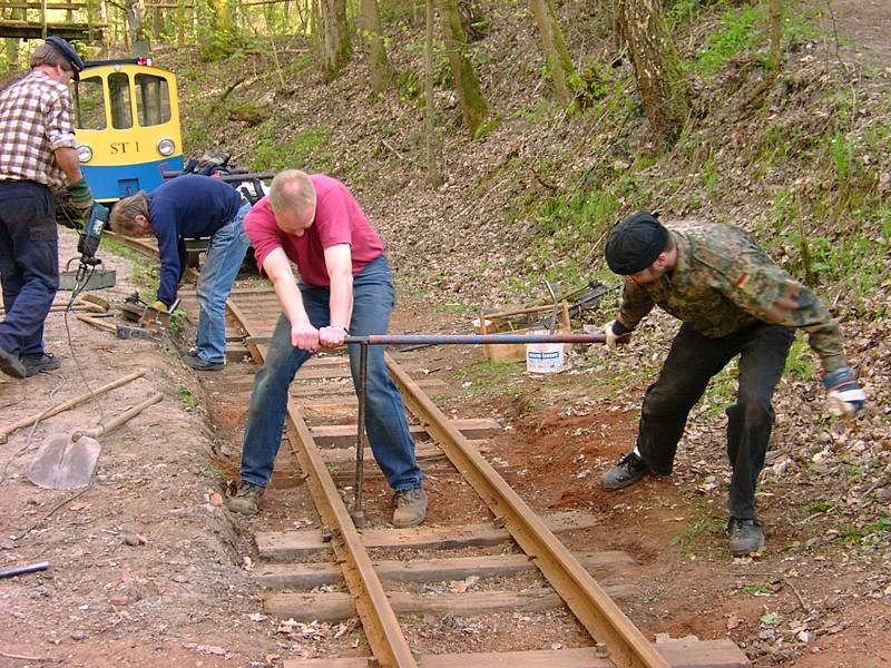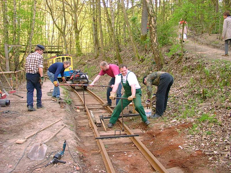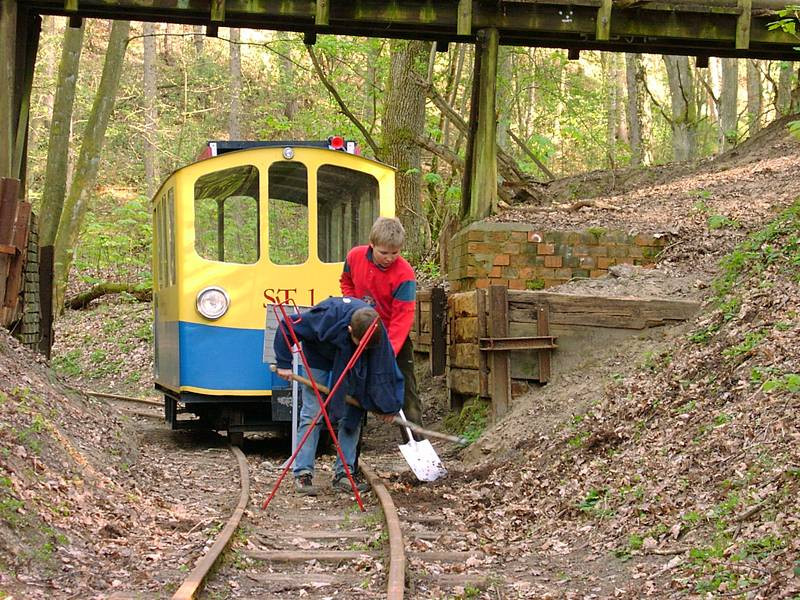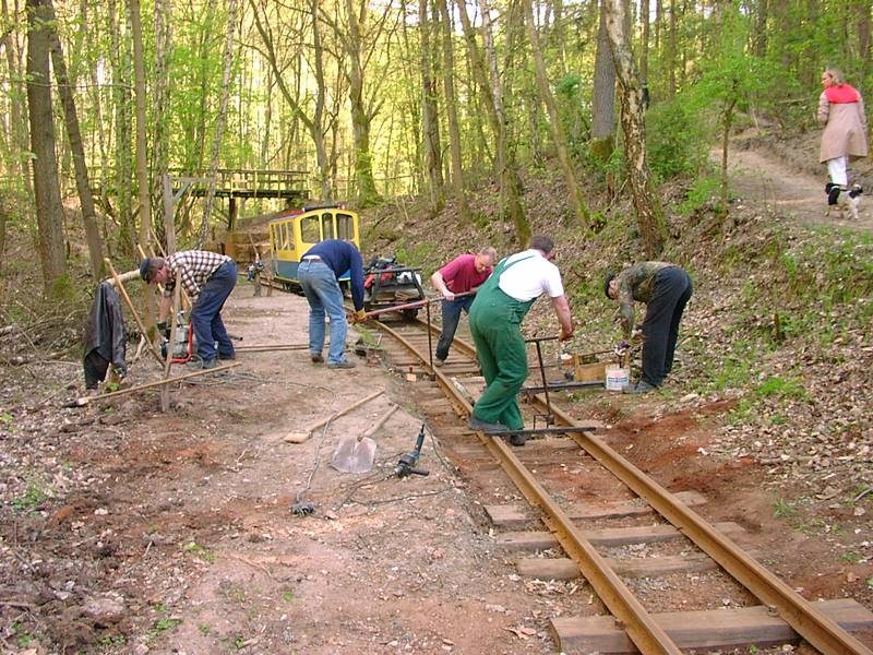 Die Kurve am Hasenberg gehört, wie das Streckenende, zu den noch unrestaurierten Streckenabschnitten. Sie wurden also seit dem Ziegeleibahnbetrieb nicht mehr erneuert. Wegen der anhaltenden Trockenheit waren der Boden und die Schwellen stark ausgetrocknet, was vom Standpunkt der Schwellenlebensdauer wünschenswert ist.